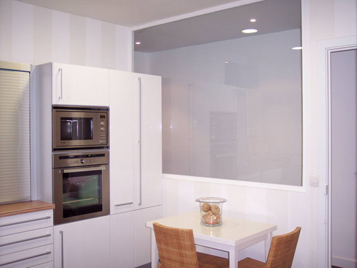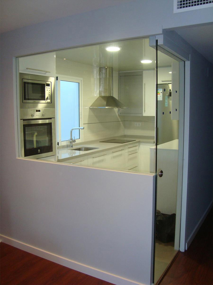 Vidrio laminar transparente de 4+4 mm. templado. Encastrado en obra.