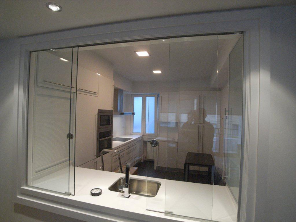 Laminar 6+6 transparente, encastrado en estructura acero inox.