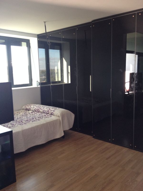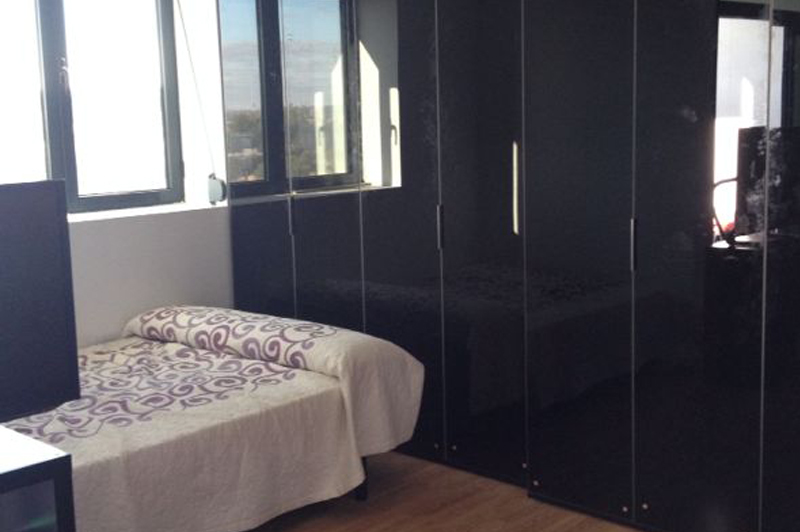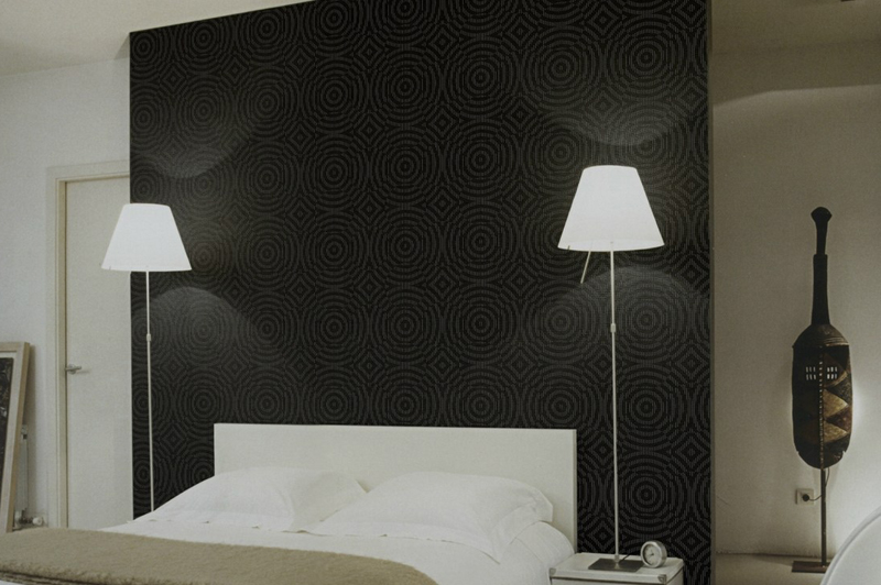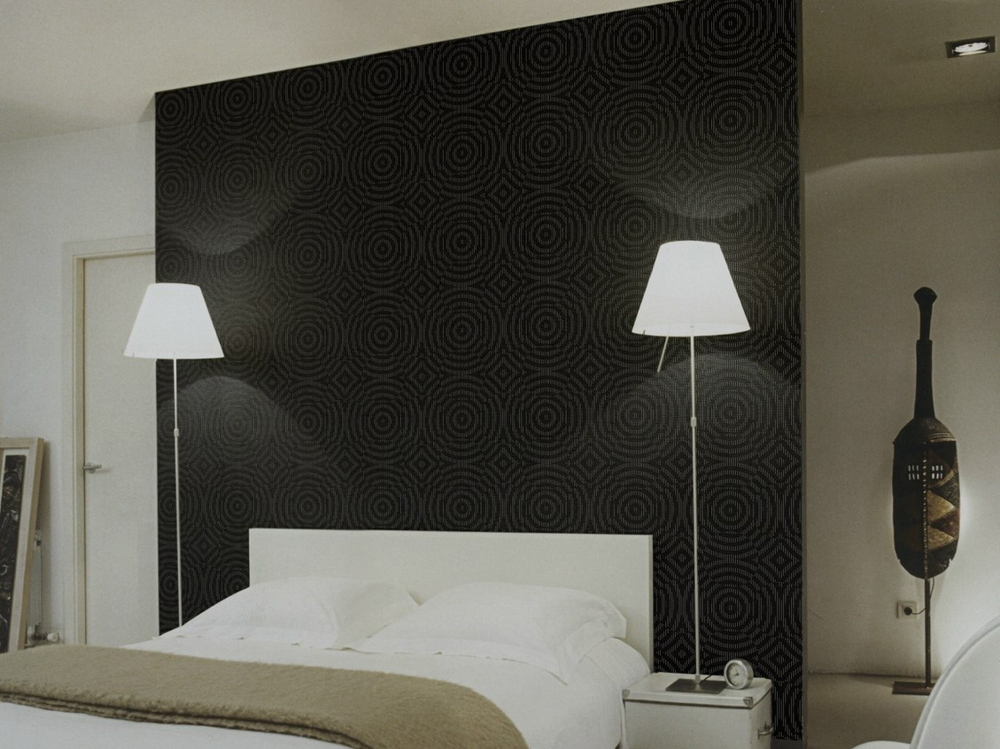 Serigrafiado en dormitorio de suelo a techo a modo de cabecero.