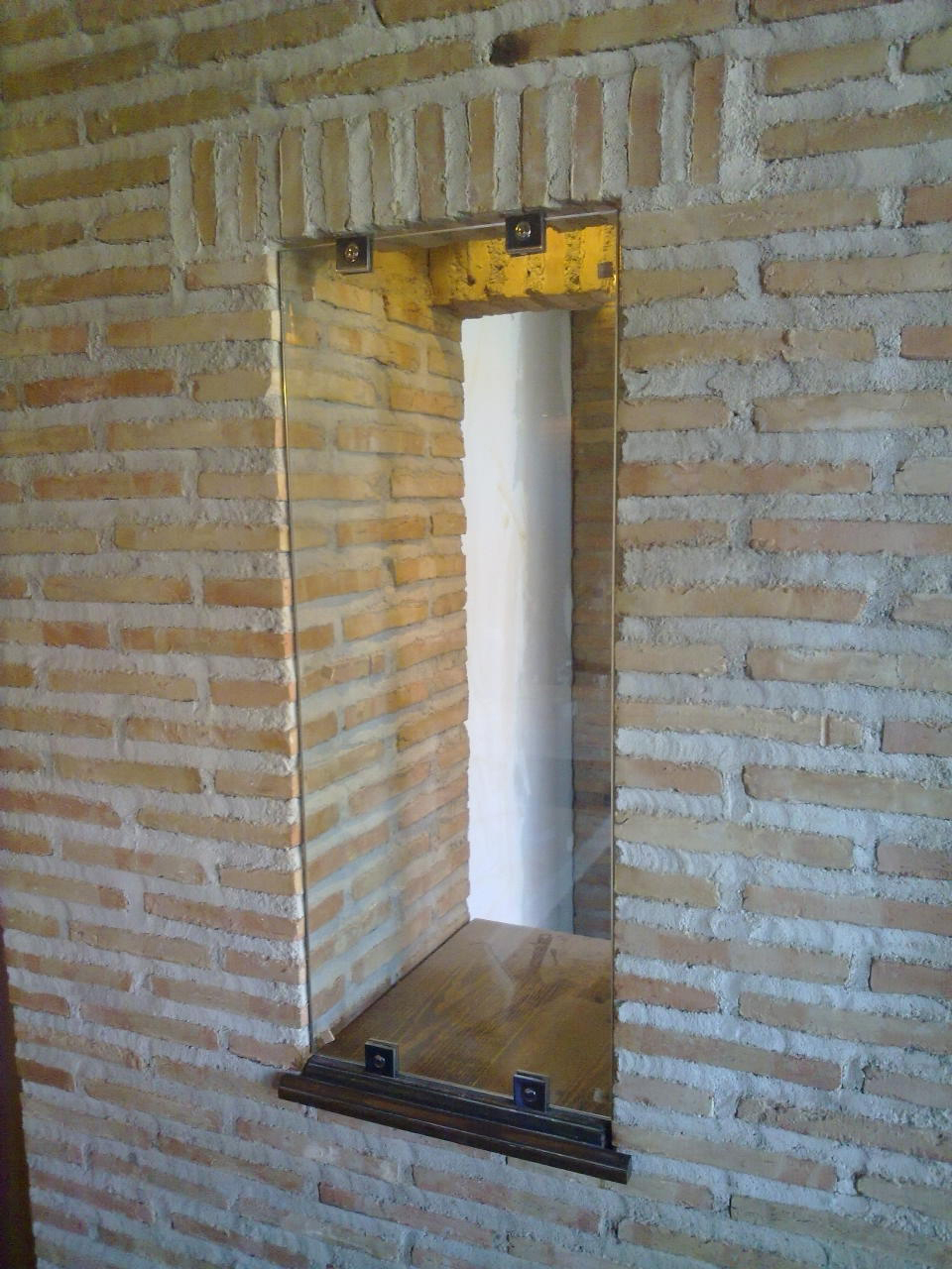crital templado de 5 mm. engarzado con pinzas sujección acero inox.